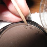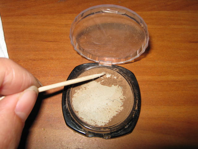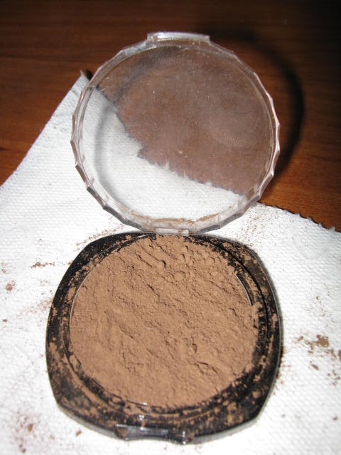 When the container is hot enough, take a X-acto knife and wedge it into the gap between the pot and container. Then carefully try to wedge the pot out. This takes some patience. If the pot is still being stubborn, let it heat on the lamp for another minute and try again. Eventually the pot will pop out. Depending on the contents, there is a possibility of it cracking a bit. For the READY foundation, bronzer, and blush, I didn’t have any cracking problems at all. However, for the the READY Touch-Up finishing Veil, I did have minor cracks along the side. But not enough to be considered damaged.