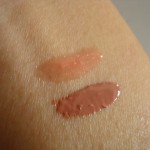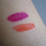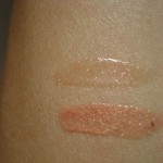 As far as the color: it’s actually rather sheer; you have to add a couple of layers before the color becomes really noticeable. The samples I swatched on my arm had a good 4-5 applications for the color to appear. And when I look at the 2 colors side by side, they do look rather similar, though this could be due to the lighting as I took the pictures rather quickly in the car during my lunch break. I found the actual application on my lips a bit on the greasy side for the 09 Neon Red. The texture is buttery soft and applies smoothly, but I didn’t find it to be moisturizing or very long lasting.